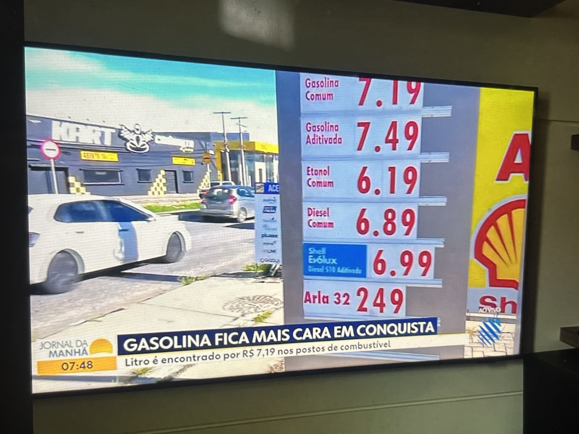 Gasolina sobe e já chega a R$ 7,19 nos postos de Vitória da Conquista
