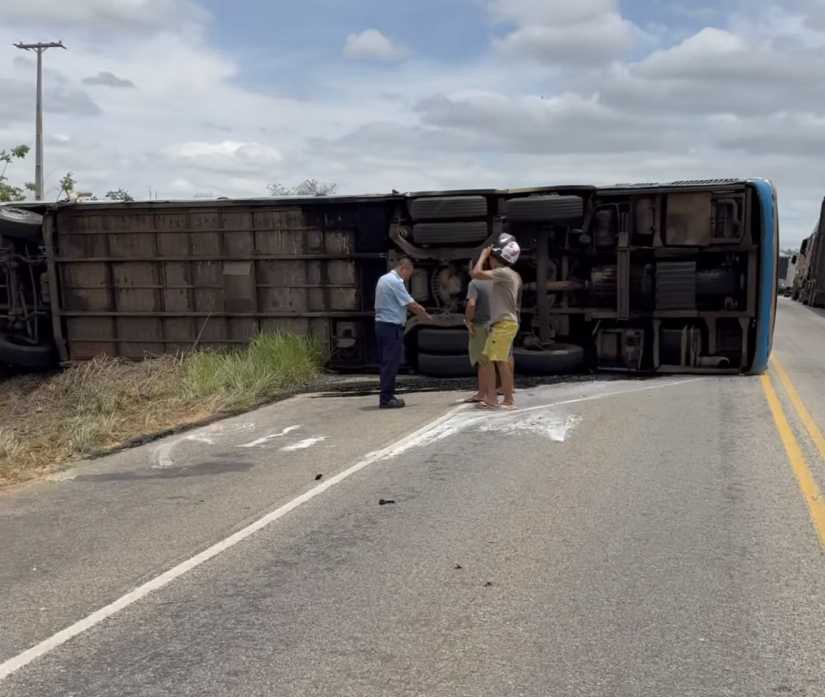 Acidente entre ônibus e carro deixa uma mulher morta e vários feridos na região de Caraíbas