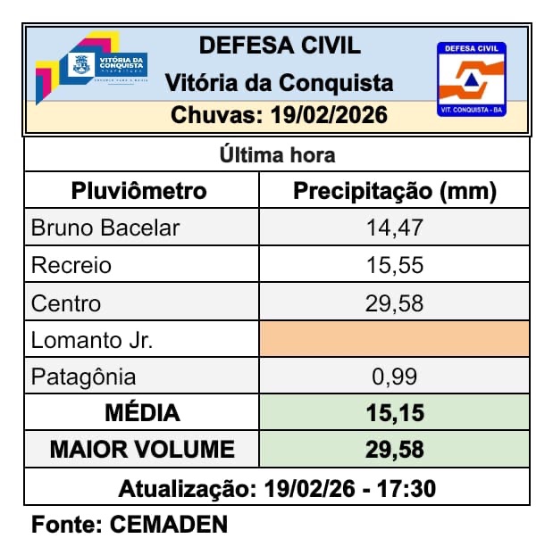 O Comitê recomenda que a população evite trafegar por áreas inundadas e não se abrigue debaixo de árvores. Em caso de emergência, a Defesa Civil pode ser acionada pelo telefone (77) 3229-3456 ou WhatsApp (77) 98856-5070.