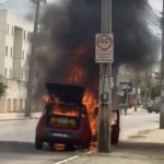Carro pega fogo na Avenida Frei Benjamin e assusta motoristas em Vitória da Conquista