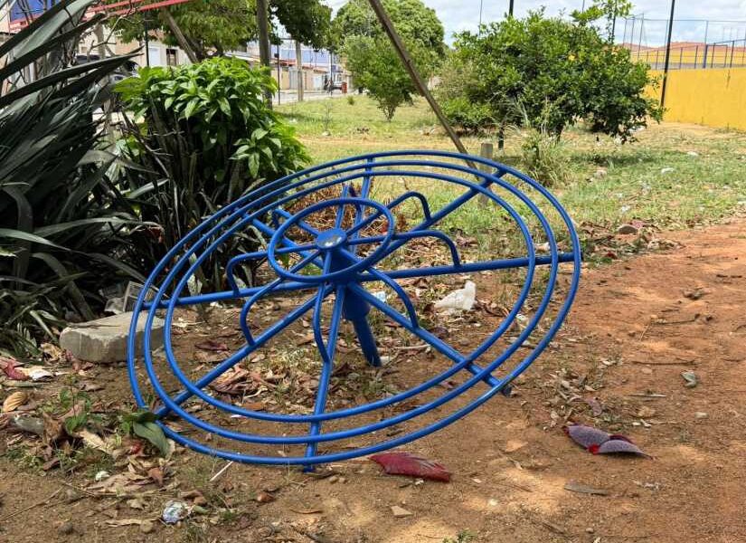 Vândalos destruíram parte da recém-inaugurada Praça Iza Medeiros, no bairro Patagônia, em Vitória da Conquista. Brinquedos do parque...