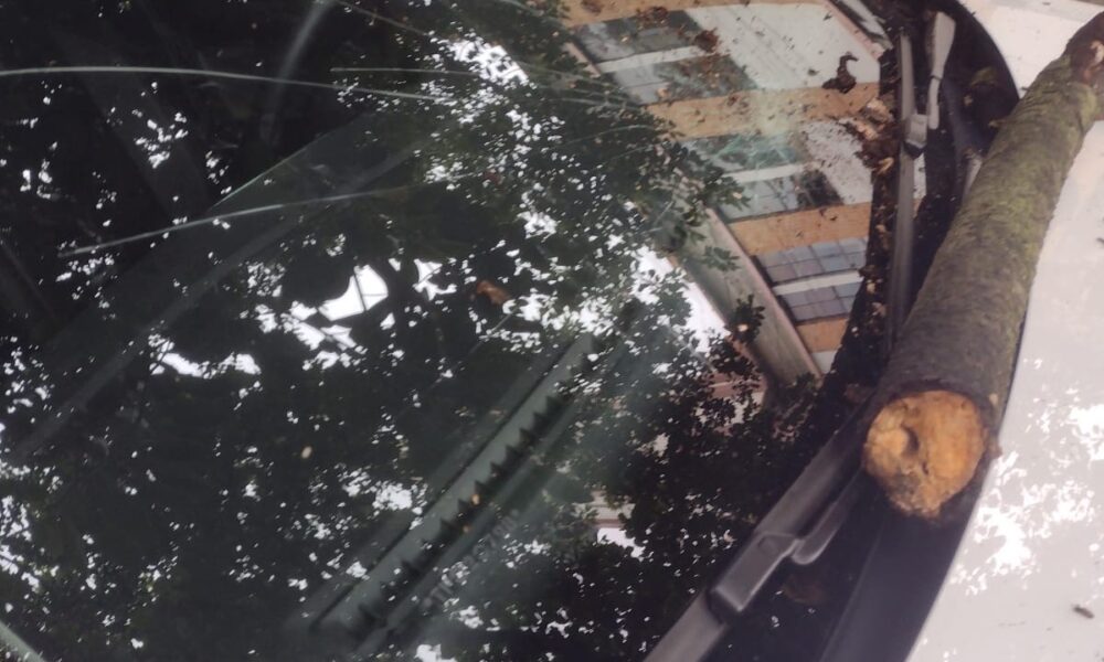 Galho cai de árvore, atinge táxi parado e reacende críticas sobre manutenção preventiva