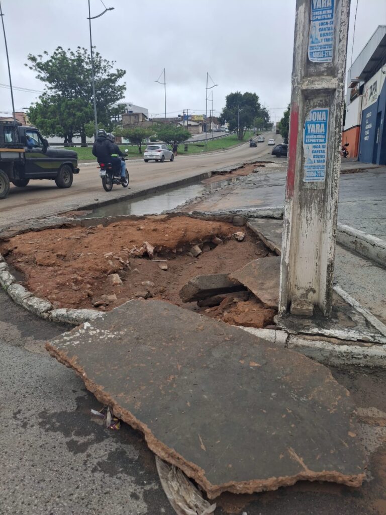 A chuva intensa que atingiu Vitória da Conquista na noite deste domingo causou estragos em diferentes regiões da cidade. No bairro Jurema, parte do asfalto da Avenida Filipinas, no Loteamento Leblon, foi arrancada pela força da enxurrada. O pavimento havia sido refeito no ano passado, mas não resistiu ao volume de água.
