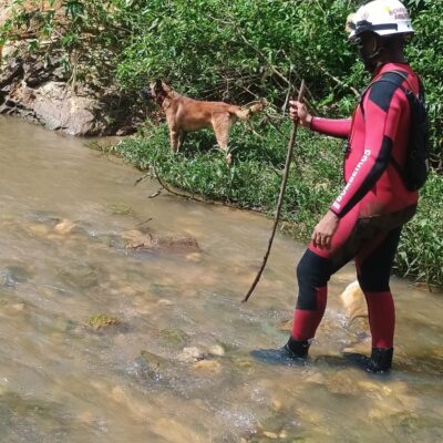 Bombeiros usam cão especializado nas buscas por Rosânia desaparecida após enxurrada