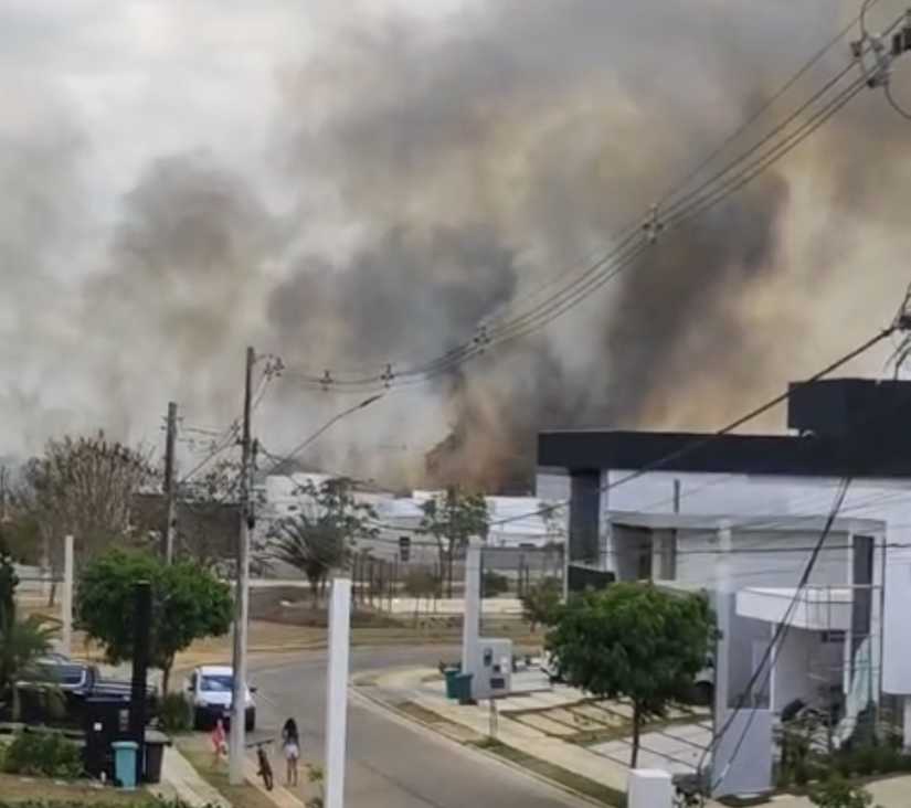 Dois incêndios de grandes proporções foram registrados nesta terça-feira (14) em Vitória da Conquista. O primeiro ocorreu na lateral do condomínio Alphaville, onde o fogo atingiu a vegetação próxima e assustou moradores com o avanço das chamas e da fumaça.