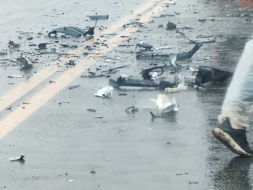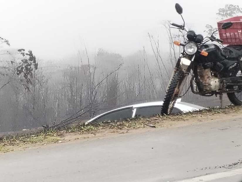 Com o impacto, a parte dianteira do carro ficou completamente destruída, e o veículo parou em uma área de mato às margens da rodovia.
