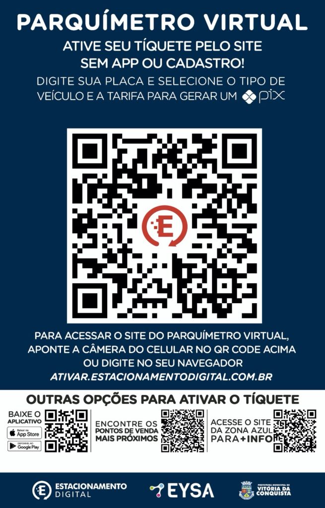 Para acessar o app, basta utilizar o QR Code e iniciar o uso da nova Zona Azul Digital de Vitória da Conquista.