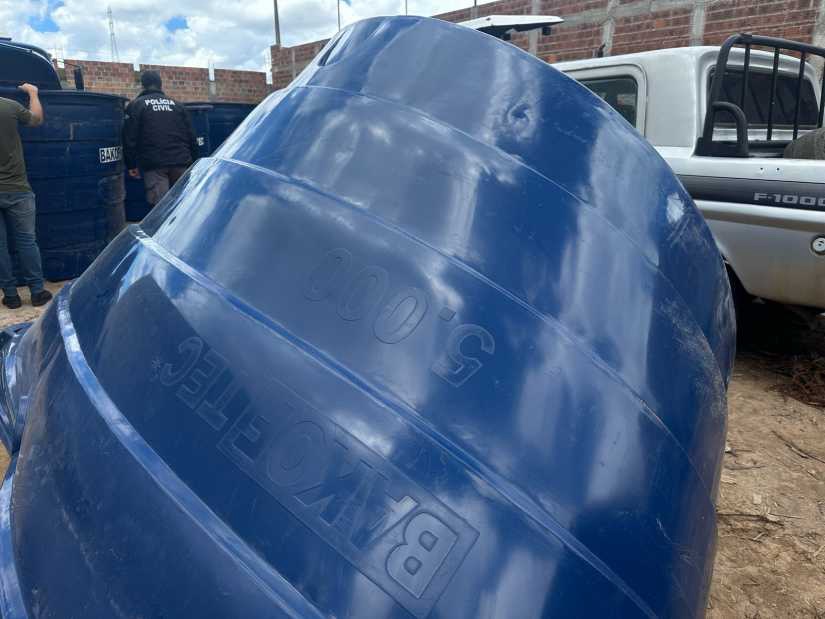 A Polícia Civil recuperou 41 caixas d’água doadas pela Codevasf, avaliadas em cerca de R$ 120 mil, nesta sexta-feira (17), no município de Poções. A ação ocorreu após denúncia anônima e contou com apoio da 10ª Coorpin e da DRFR.