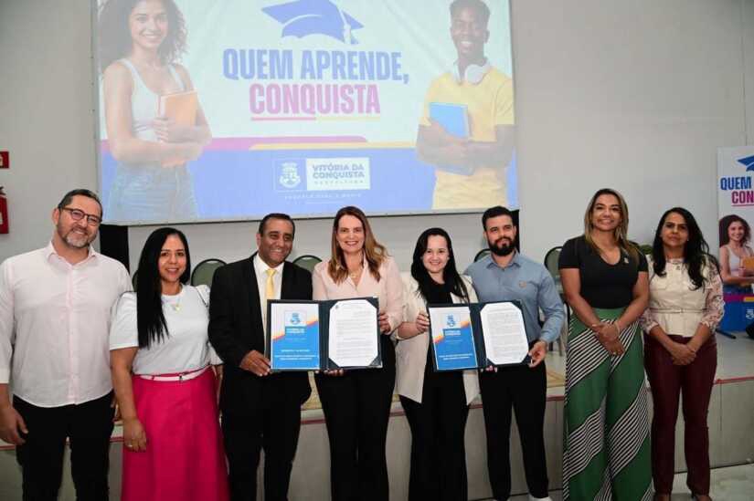 Vitória da Conquista lançou nesta quarta-feira o programa “Quem Aprende, Conquista”, iniciativa pioneira que vai oferecer 106 bolsas integrais de graduação para moradores do município e servidores públicos. O projeto pretende ampliar o acesso ao ensino superior sem gerar custos extras para os cofres públicos.