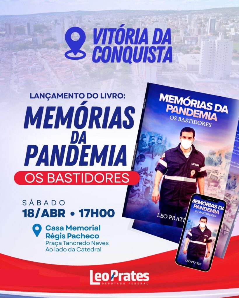 A cidade de Vitória da Conquista recebe neste sábado, às cinco da tarde, o lançamento do livro Memórias da Pandemia – Os Bastidores, escrito pelo deputado federal Leo Prates. O evento será realizado na Casa Memorial Régis Pacheco, na Praça Tancredo Neves, ao lado da Catedral.